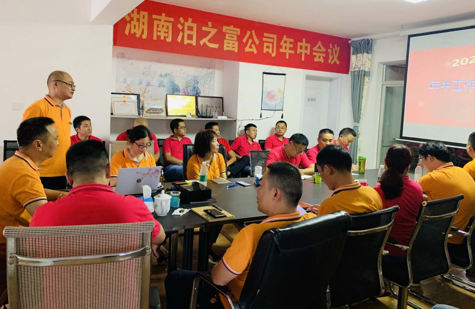 2020年7月24日上午8點30分,在主持人孫勇的開場白中,由長沙一家人實業(yè)有限公司(以下簡稱“長沙一家人”)和湖南泊之富生物技術(shù)有限公司(以下簡稱“湖南泊之富”)全體人員共同參與的年中總結(jié)會議在湖南泊之富辦公室準時舉行。
