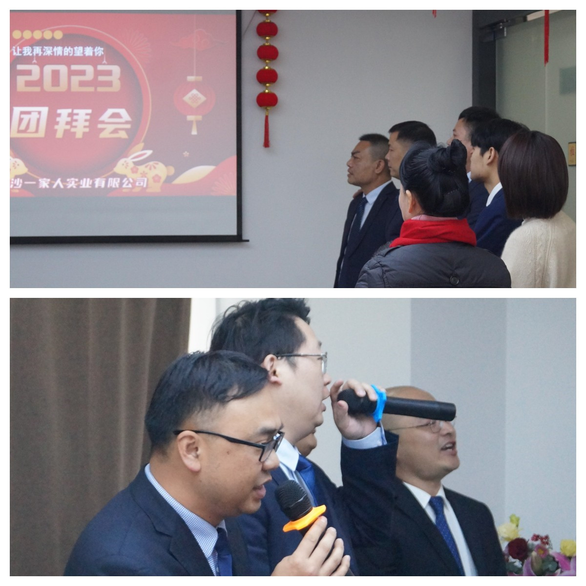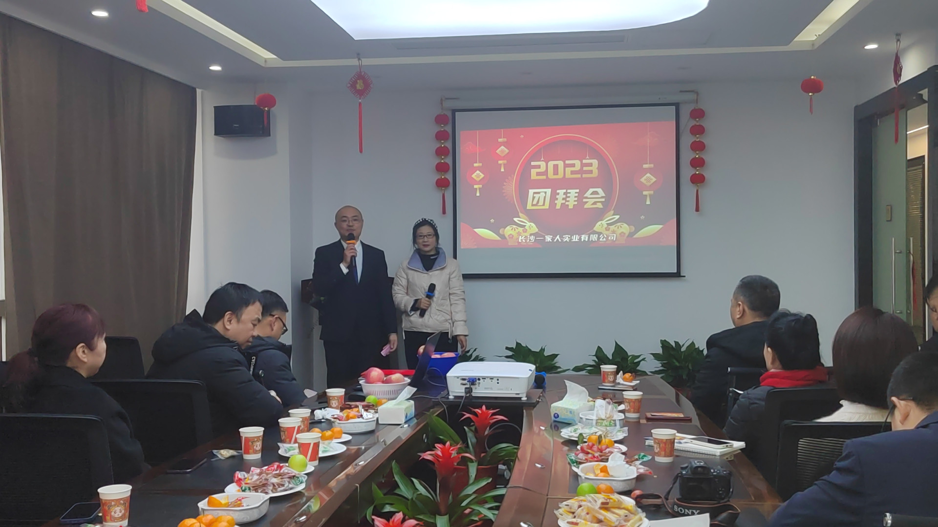 瑞雪兆豐年,2023年1月15日,2023年的第一場(chǎng)雪如約而至。在這洋溢著美好期望的小年里,長(zhǎng)沙一家人實(shí)業(yè)有限公司、湖南匯德源商貿(mào)有限公司(以下簡(jiǎn)稱“添加劑事業(yè)部”)和湖南泊之富生物技術(shù)有限公司、湖南惠益康生物科技有限公司、長(zhǎng)沙宏德晟生物科技有限公司(以下簡(jiǎn)稱“動(dòng)保事業(yè)部”)的2022年表彰大會(huì)暨2023年主題為“華廳集瑞,旭日臨門,家人基業(yè),再展宏圖”迎新團(tuán)拜會(huì)在裝修一新的華晨雙帆大廈15樓辦公室會(huì)議廳隆重舉行,兩個(gè)事業(yè)部的全體人員盛裝出席。