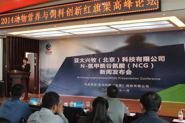 2014年11月19日, “動物營養(yǎng)與飼料創(chuàng)新紅旗渠高峰論壇暨亞太興牧N-氨甲酰谷氨酸(NCG)新聞發(fā)布會”在河南林州舉辦,本次會議由亞太興牧(北京)科技有限公司主辦。我司業(yè)務(wù)經(jīng)理龔倉云、王輝攜部分飼料企業(yè)技術(shù)總監(jiān)參加。