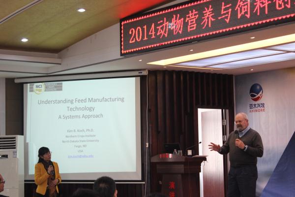 會上,中國科學(xué)院亞熱帶農(nóng)業(yè)生態(tài)研究所印遇龍院士、中國農(nóng)業(yè)大學(xué)譙仕彥教授、美國北卡州立大學(xué) Sung Woo Kim 教授、北達(dá)科他州立大學(xué) Kim Koch 教授等國內(nèi)外知名營養(yǎng)專家均進(jìn)行講座。就何為功能性氨基酸及其如何改善豬的生長性能,NCG的研發(fā)歷程、作用機(jī)理及申報歷程,飼料加工工藝、飼料生產(chǎn)的經(jīng)營與監(jiān)督,國家飼料工程技術(shù)研究中心最新研究進(jìn)展等方面進(jìn)行了深入探討與分析。會議同時還邀請河南科學(xué)院副院長呂純操先生、中農(nóng)穎泰集團(tuán)董事長郭文江先生參加。