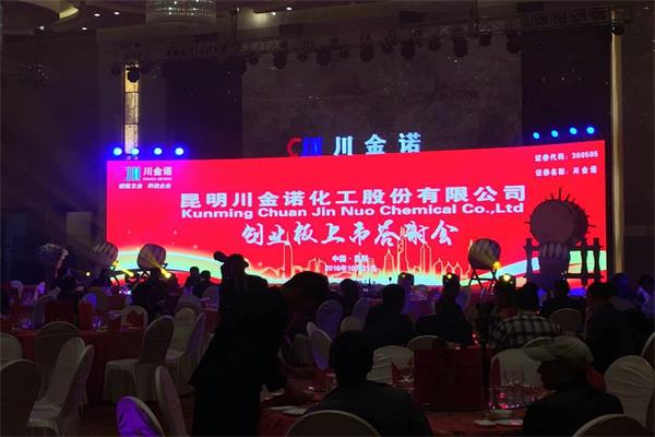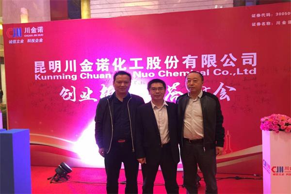 2016年10月31日晚,“昆明川金諾化工股份有限公司2016年上市答謝會(huì)暨M(jìn)DCP新產(chǎn)品推薦會(huì)”在世紀(jì)金源大飯店一樓宴會(huì)廳隆重舉行,我司李宏斌總經(jīng)理、何志強(qiáng)經(jīng)理、姚勇經(jīng)理參加會(huì)議。