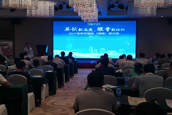 2017年6月15日-6月16日,由諾偉司國際公司主辦,長沙一家人實(shí)業(yè)有限公司參與協(xié)辦的諾偉司國際(湖南)研討會(huì)在長沙隆華國際大酒店順利召開。本屆研討會(huì)以“無抗新高度,微量新時(shí)代”為主題,探討了“三無”(無抗原、無抗生素、無抗?fàn)I養(yǎng)因子)理念和“三低”(抵抗、低礦、低排)的教保料配方思路,以及通過螯合有機(jī)微量元素提升母豬繁殖性能、降低糞便排泄和大數(shù)據(jù)營養(yǎng)云系統(tǒng)來實(shí)現(xiàn)精準(zhǔn)配方等話題。來自湖南各地的大型飼料廠和養(yǎng)殖場(chǎng)的80位管理人員、技術(shù)負(fù)責(zé)人等共同參與了本屆研討會(huì)。